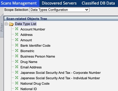 The first step in defining a scan is identifying the types of data that the scan should be able to look for. Under the Scans Management tab in the blue ribbon should be a drop-down menu labeled Scope Selection. In this menu, select Data Types Configuration.