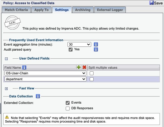 Organizations may have unique monitoring needs, so Imperva DAM also offers the capability to build custom audit policies. These can cover regulations not supported by default or allow an organization to monitor specific types of data in alignment with business needs.