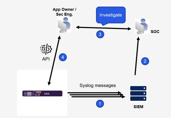 - DRA sends incidents into the SOC SIEM system using the Syslog protocol