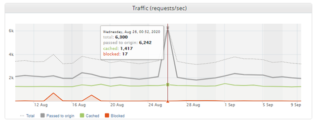 For example, in the screenshot above, this application had 6,300 total requests on 26th August which is much higher than previous traffic trends. This may have been due to a marketing campaign which would lead to DDoS being triggered prematurely if this user did not change the threshold in advance.