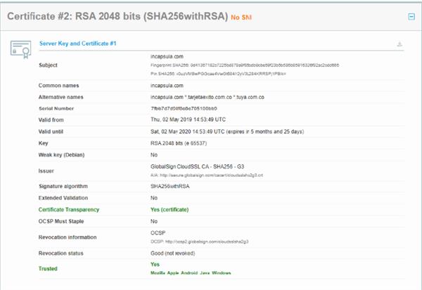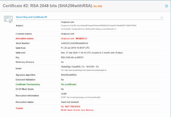 We are using our custom certificate and Incapsula certificate, however we are unsure of which certificate will be presented.