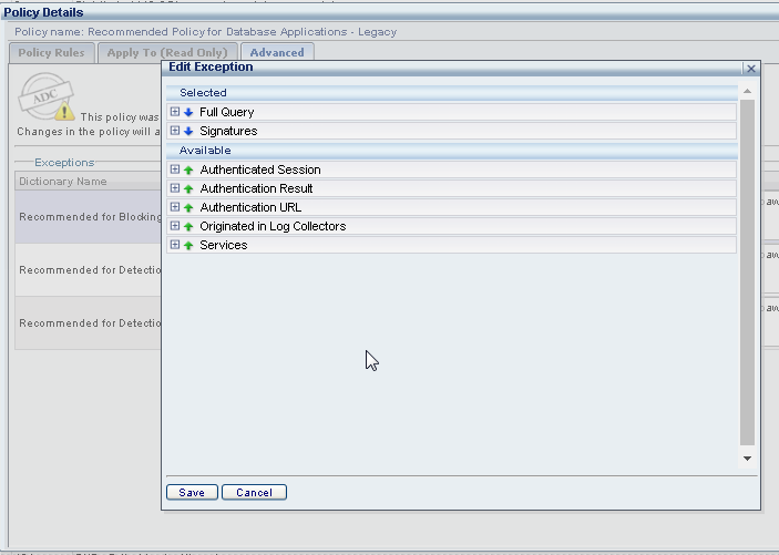 Recommended Policy for Database Applications - Legacy" link (as a shortcut) to access this policy directly, and then select the