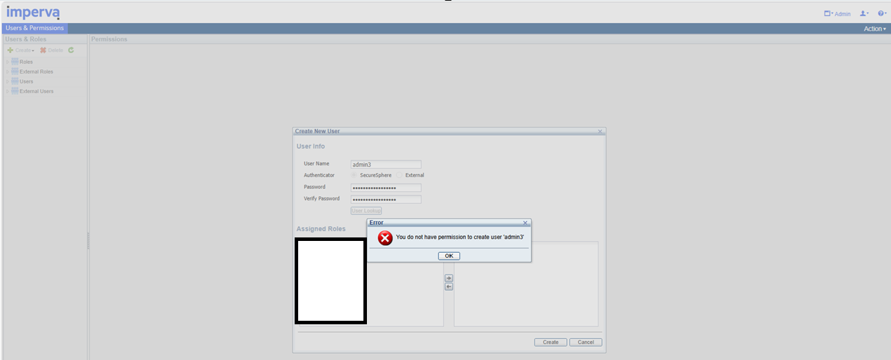 Once external roles have been created, external system users that were not defined as SecureSphere users can login to SecureSphere. In that case all the Active Directory users that are members of Active Directory group for which you define external roles can login into SecureSphere.