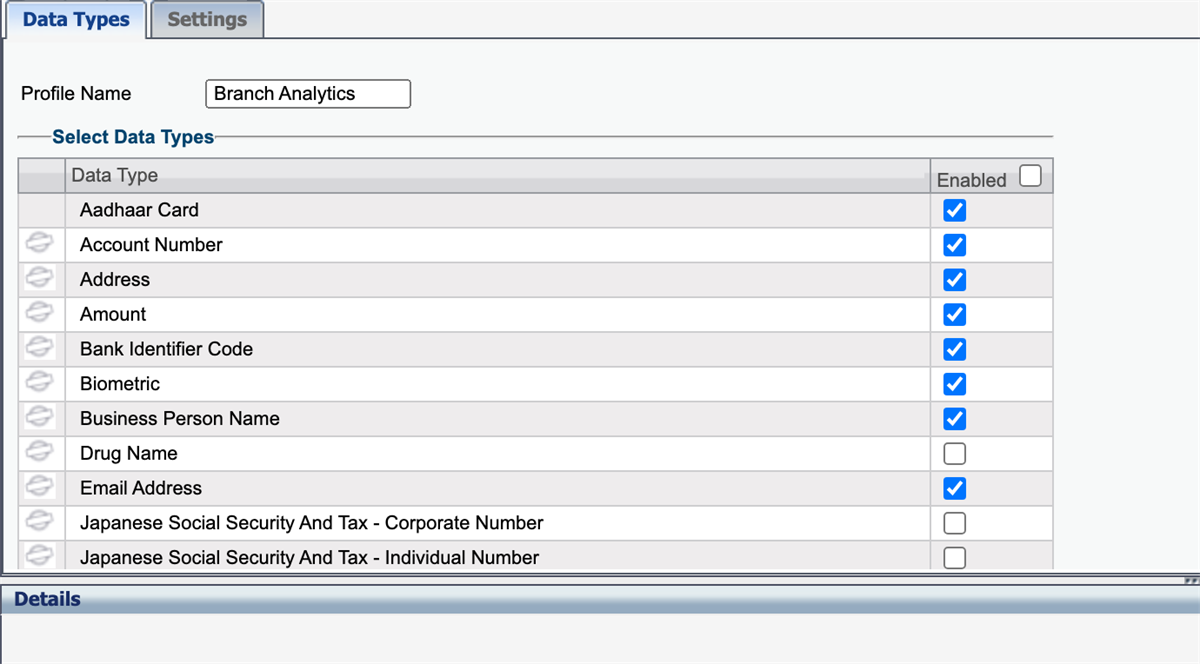 You can configure a profile anytime by enabling/disabling data types or rules, or by adding/removing user-defined rules.