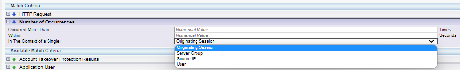 I see that there is an option for number of occurrences however it only has for four requests: Originating Session, Server Group, Source IP and User.